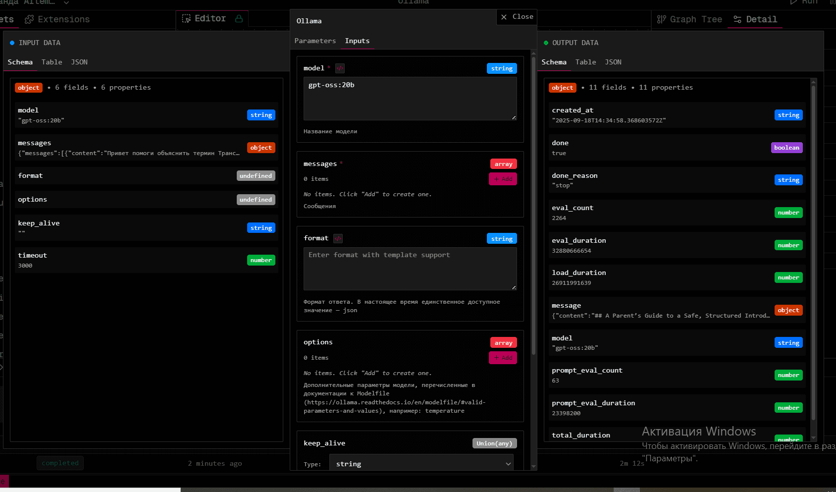 - Результаты нод - доступны через двойной клик на ноду