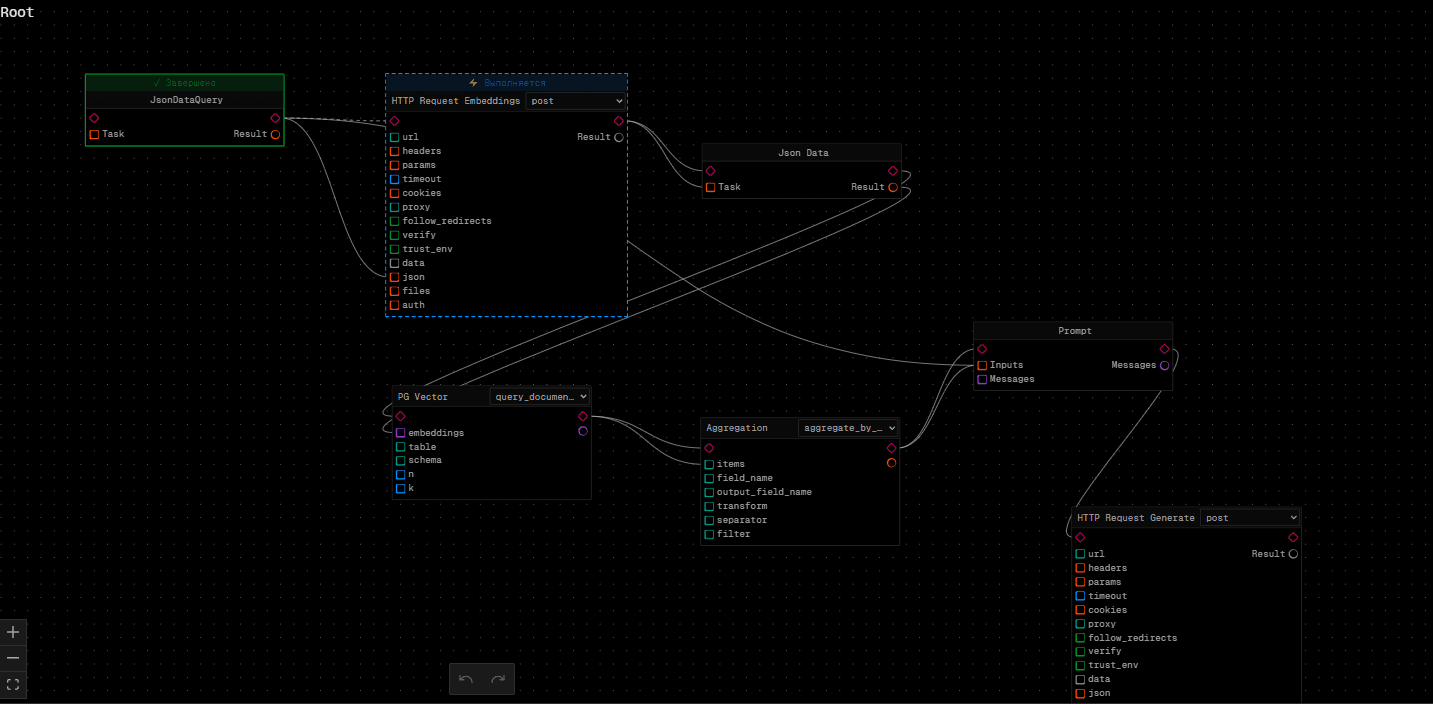Система автоматически определяет порядок выполнения нод: