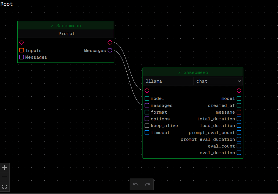 - Перетащите линию к входному порту другой ноды (квадрат)